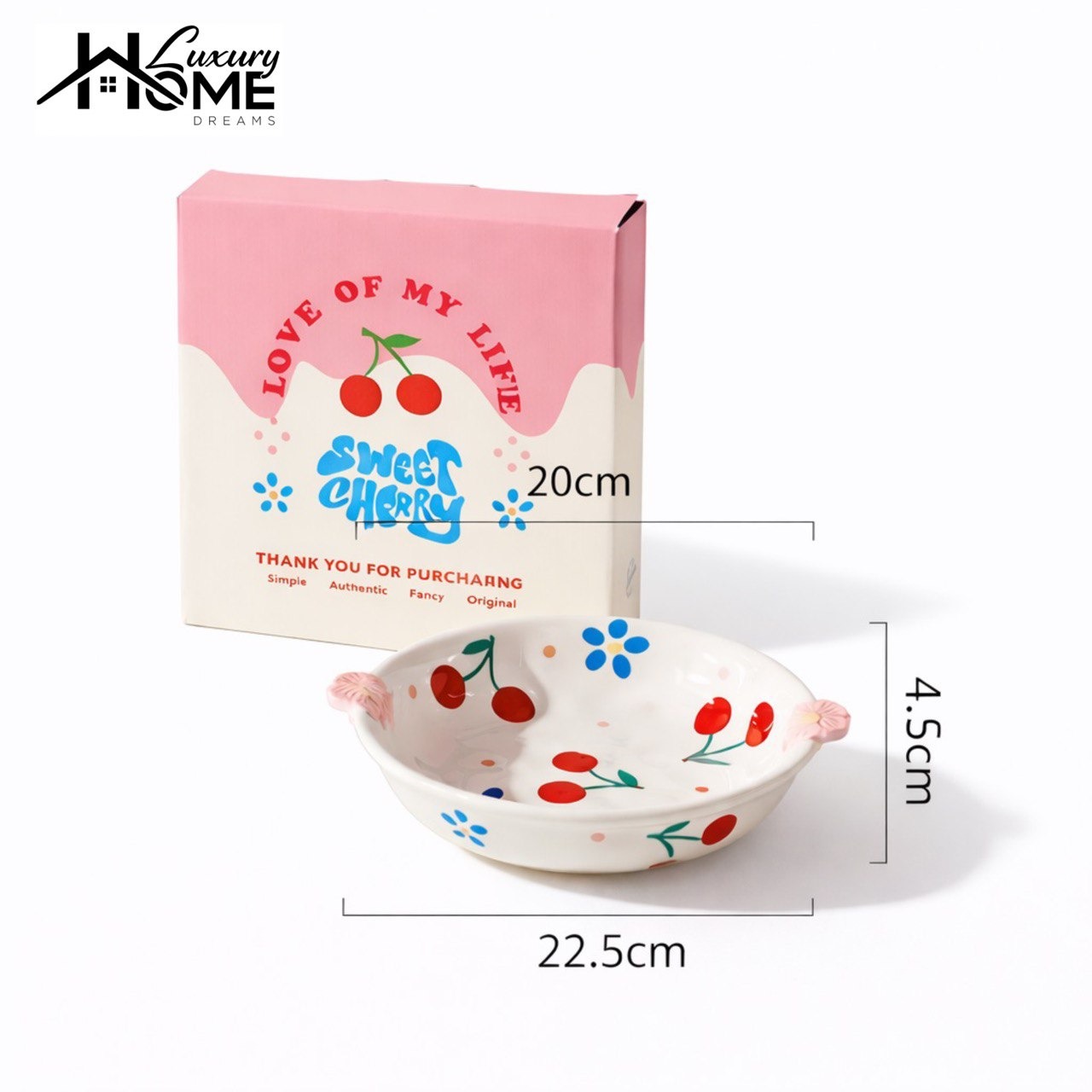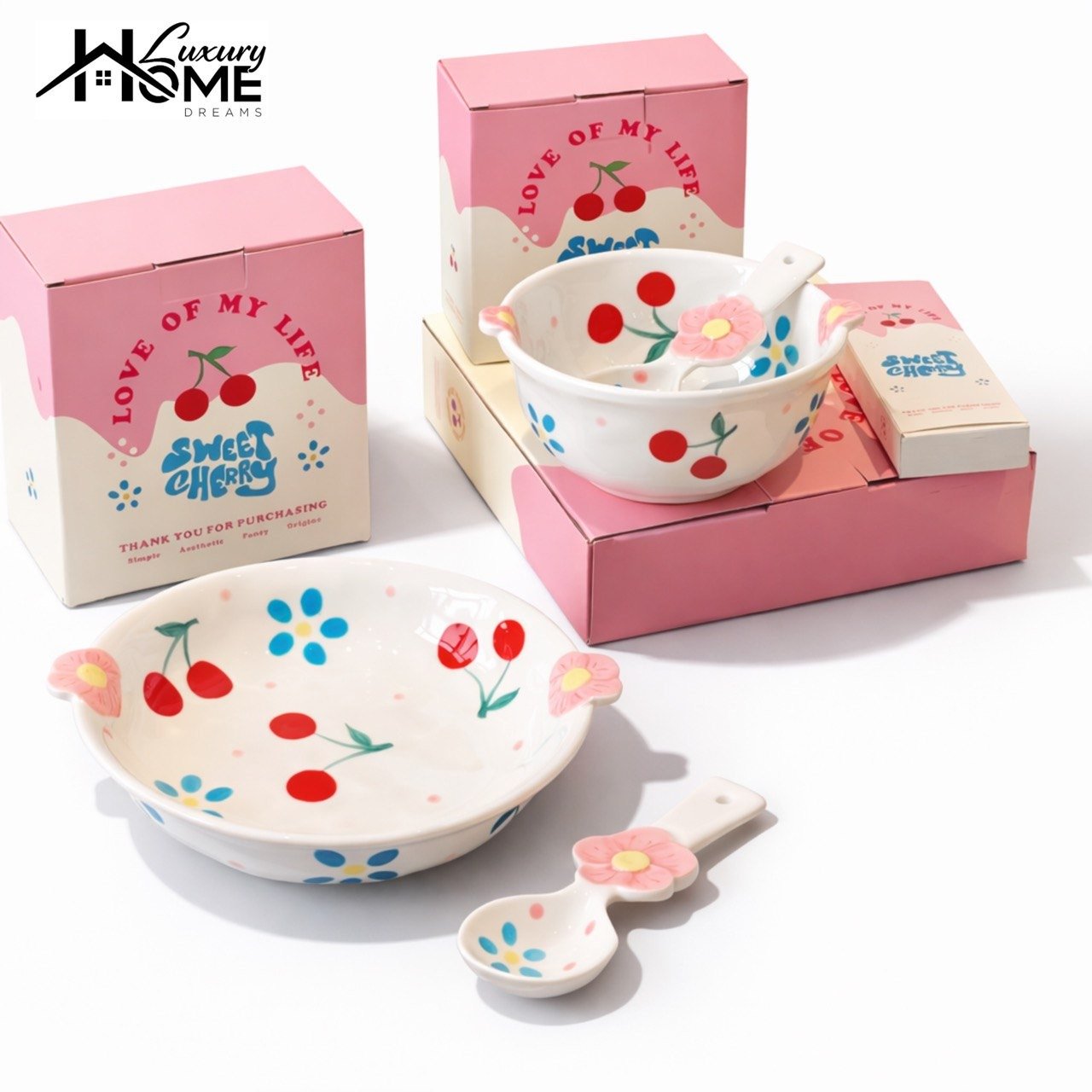طقم تقديم أنيق مصنوع من الخزف عالي الجودة بتصميم ناعم مستوحى من الكرز والزهور، يجمع بين الجمال والعملية ليكون خيارك المثالي للاستخدام اليومي .